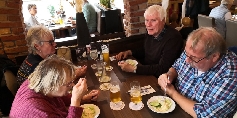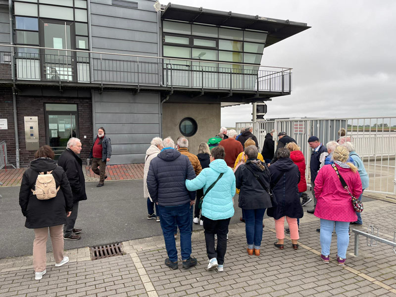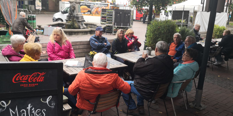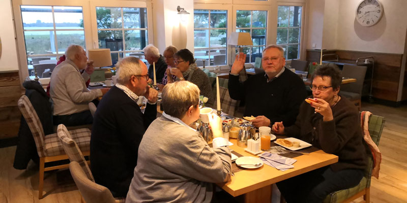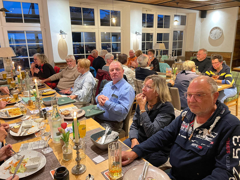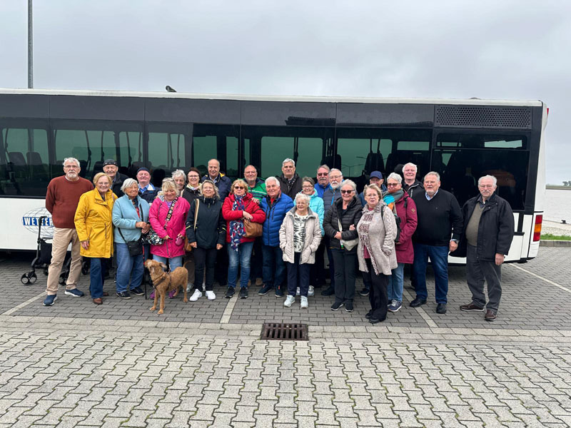 Am Morgen des 10. Oktobers 2025 ging es los mit dem Bus unseres Kameraden Werner Rittmann und 20 Personen zum jährlichen Herbstausflug, diesmal nach Ostfriesland. 8 Personen waren mit PKWs schon ein paar Tage vorher in die Richtung gefahren. Unterwegs machten wir eine kurze Frühstückspause. Die erste Station war Emden, wo wir am Hafen in der Nähe des Otto-Huus im Café einkehrten. Kurz nach 15:00 Uhr erreichten wir unser Ziel: das „Landhaus am Großen Meer“. Das Wetter lud zum Sparziergang ein bevor wir uns zum gemeinsamen Abendessen trafen. Am Samstagmorgen ging es mit der Fähre von Norddeich nach Norderney. Hier verbrachten wir ein paar Stunden mit spazieren am Strand, Fischbrötchen essen oder auch shoppen. Abends aßen wir dann wieder gemeinsam in der Unterkunft. Am Sonntagmorgen stand eine Besichtigung des Emssperrwerks auf dem Programm. Die Gästeführerin vermittelte eine Menge Hintergrundinformationen über das Bauwerk. Auch der Filmvortrag war interessant. Ein kurzer Rundgang auf der „Sperrmauer“ rundete den Besuch ab. Anschließend kehrten wir noch im Leer in einem griechischen Restaurant ein, bevor wir dann die Heimreise antraten. Wir hatten wieder einmal ein schönes gemeinsames Wochenende.